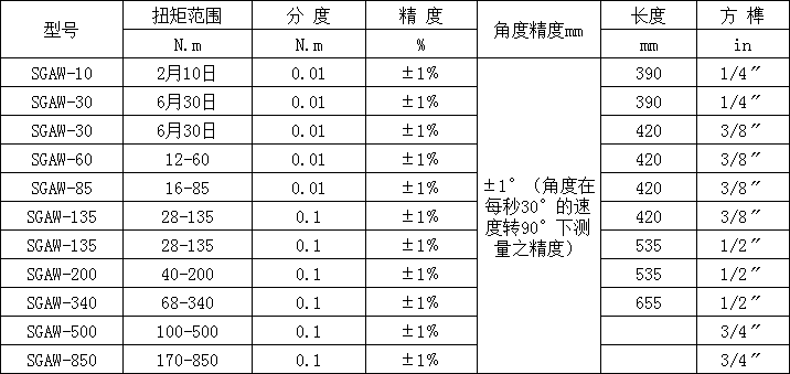 500N.m帶角度扭力扳手規(guī)格型號(hào)